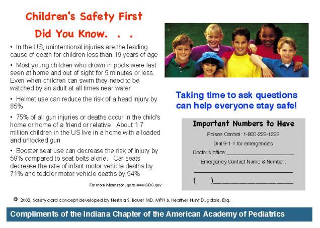 1. American Academy of Pediatrics, HealthyChildren.org website has great parent friendly resources including: Gun Safety: Keeping Children Safe