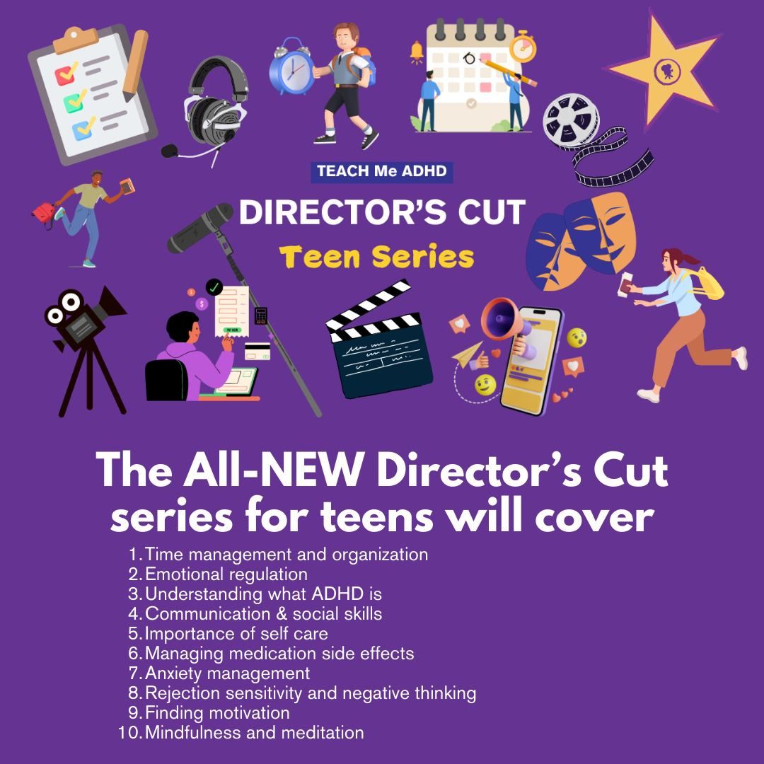 Using the same fun, engaging and interactive format TEACH Me ADHD is known for, we've developed a THEATER-THEMED curriculum just for teens (ages 13-18) so they will become the "director" of their biggest production yet--LIFE.